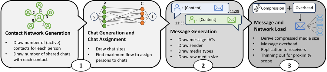 Kürzlich wurde unser Artikel mit dem Titel „Modeling Network Load of Mobile Instant Messaging: A Modular Source Traffic Generator“, der von unserem Lehrstuhl in Zusammenarbeit mit Forschern der Universität Würzburg verfasst wurde, in das Band der Zeitschrift IEEE Transactions on Network and Service Management aufgenommen. In diesem Artikel wird untersucht, wie der Datenverkehr von Mobile Instant Messaging (MIM) effektiv modelliert werden kann, um die Netzwerkplanung zu unterstützen. Apps wie WhatsApp ermöglichen zwar den weltweiten Austausch von Text-, Bild-, Video- und Sprachnachrichten, verursachen jedoch eine hohe Netzwerkbelastung, insbesondere in Gruppenchats. Die End-to-End-Verschlüsselung verhindert die direkte Beobachtung des Nachrichtenflusses und erfordert daher alternative Modellierungsansätze. Wir stellen einen modularen Ansatz zur Quelldatenverkehrsmodellierung (Source Traffic Modeling, STM) für MIM vor, der dessen Schlüsselkomponenten identifiziert und Lücken durch Untersuchungen zu Kommunikationsmustern, Kontaktnähe, Medienkomprimierung und Dateigrößenverteilungen schließt. Durch die Kombination von Literatur und empirischen Daten wird das STM-Framework implementiert und zur Schätzung des täglichen Netzwerkverkehrs pro Benutzer verwendet. Diese Forschung zeigt, wie eine strukturierte Verkehrsmodellierung das Verständnis des Netzwerks verbessern und als Leitfaden für die zukünftige Netzwerkgestaltung für verschlüsselte MIM-Dienste dienen kann. Paper: Fabian Poign´ee, Anika Seufert, Frank Loh, Michael Seufert, Tobias Hoßfeld. "Modeling Network Load of Mobile Instant Messaging: A Modular Source Traffic Generator." IEEE Transactions on Network and Service Management Journal. Link zum Paper: