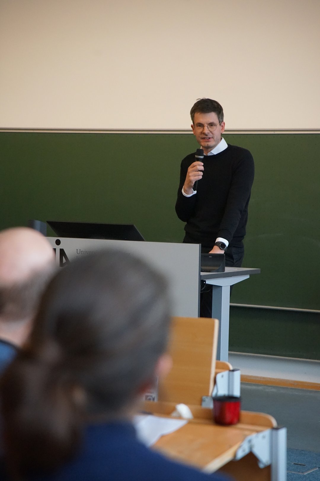 Am 24. November 2025 stellte sich der Leiter des Pressereferats des Bundesministeriums der Justiz, Dr. Eike Hosemann dem zweiten Rechtsgespräch im Wintersemester 2025/26 unter der Überschrift „Über Recht sprechen“. Im Zentrum des von Tobias Lutzi moderierten Gesprächs stand der Umgang des Ministeriums mit der sich im Wandel befindlichen Medienlandschaft, die von einer zunehmenden Heterogenität, aber auch von einem gewissen Vertrauensverlust der Bevölkerung in traditionelle Medien(-kommunikation) geprägt sei. Die Kommunikationsabteilungen von Ministerien müssten hier die richtige Balance zwischen proaktiver Kommunikation und inhaltlicher Zurückhaltung finden. Die Schnelllebigkeit des öffentlichen, auch juristischen Diskurses mache dies nicht leichter, wie Hosemann anhand zahlreicher Beispiele aus der laufenden und vorherigen Legislaturperiode anschaulich zeigte.