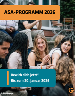 Seit dem 1. Dezember können sich Studierende und Auszubildende (21–30 Jahre) für das ASA-Stipendium 2026 bewerben. Auch in diesem Jahr warten über 100 Projekte in rund 45 Ländern weltweit auf die Teilnehmenden. Die Projekte für 2026 finden Sie hier: ASA Projektfinder - ASA.