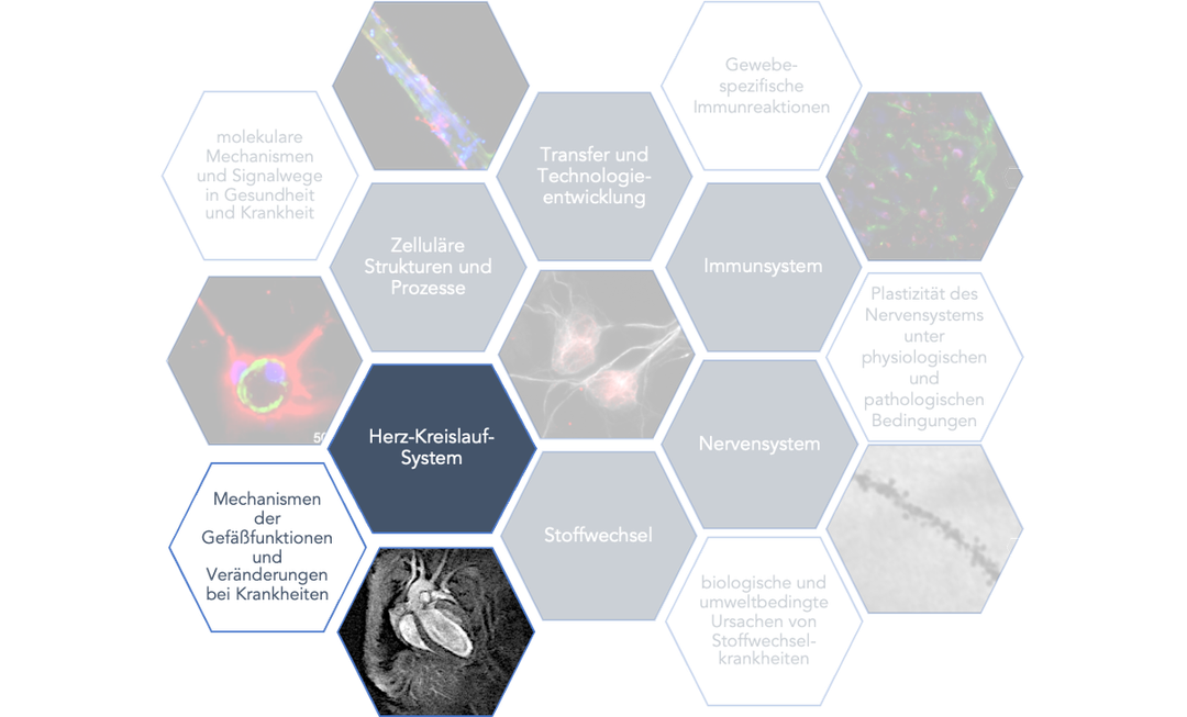 Um die Funktionen des Kreislaufsystems und deren Beeinträchtigungen durch Krankheiten wie Hypertonie, Diabetes und Herzinsuffizienz besser zu verstehen untersuchen wir wichtige Autoregulationsmechanismen in vaskulären glatten Muskelzellen sowie Endothelzellfunktionen. Zudem erforschen wir adaptive strukturelle und funktionelle Umbauprozesse im Gefäßsystem, die Interaktionen zwischen dem Herz-Kreislauf- und dem Immunsystem sowie zellspezifische molekulare Signaturen in Zielorganen bei kardiovaskulären Erkrankungen.