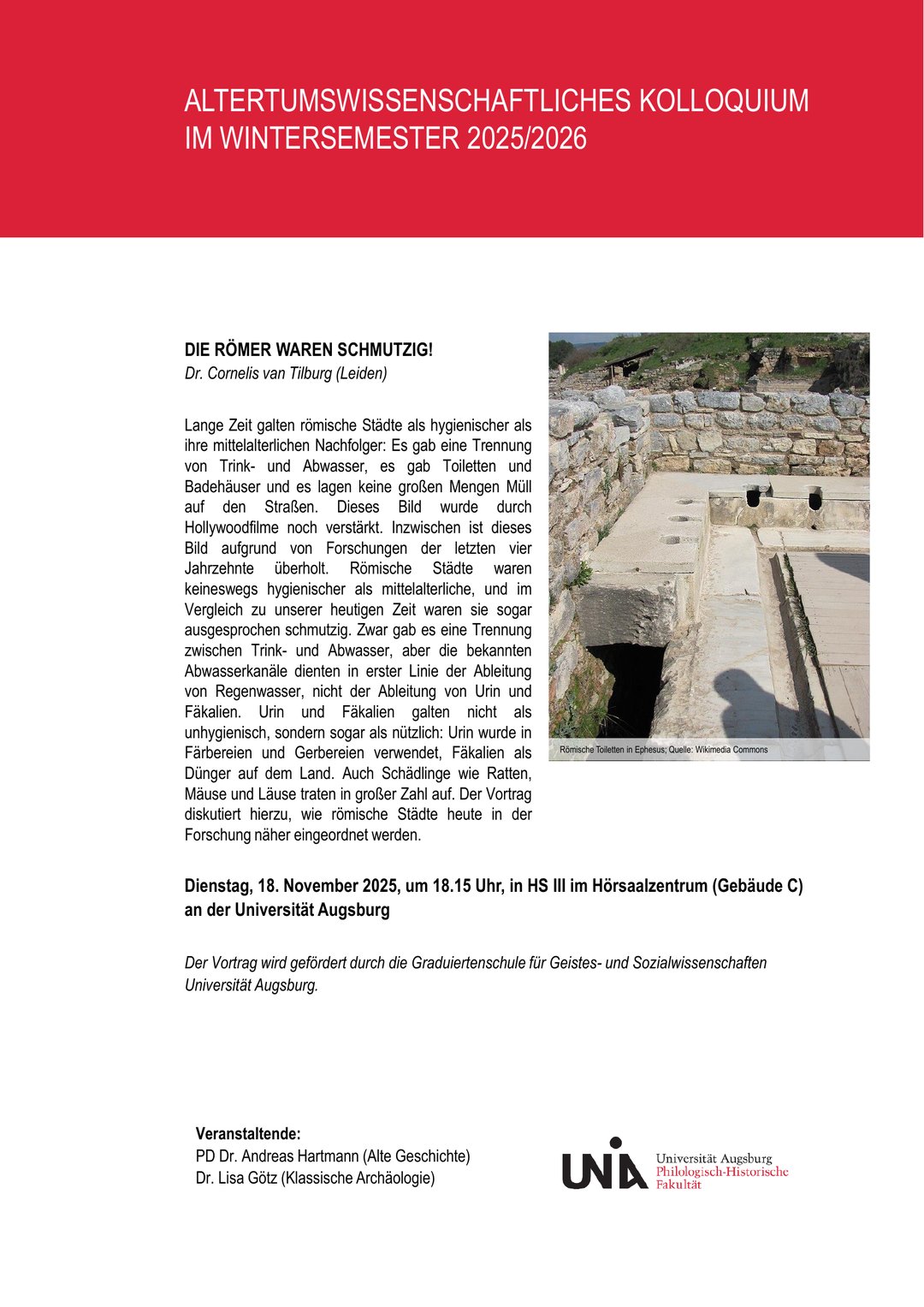 Das Winterprogramm der Alten Geschichte und Klassischen Archäologie an der Universität Augsburg.