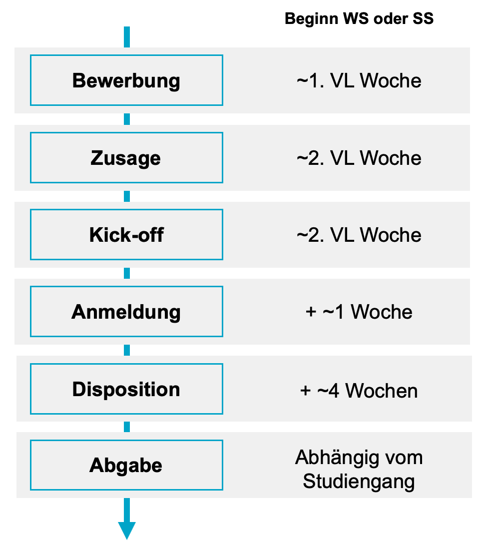- Der Studierende ist verantwortlich für die fristgerechte Anmeldung (innerhalb einer Woche nach der Kick-Off Veranstaltung)